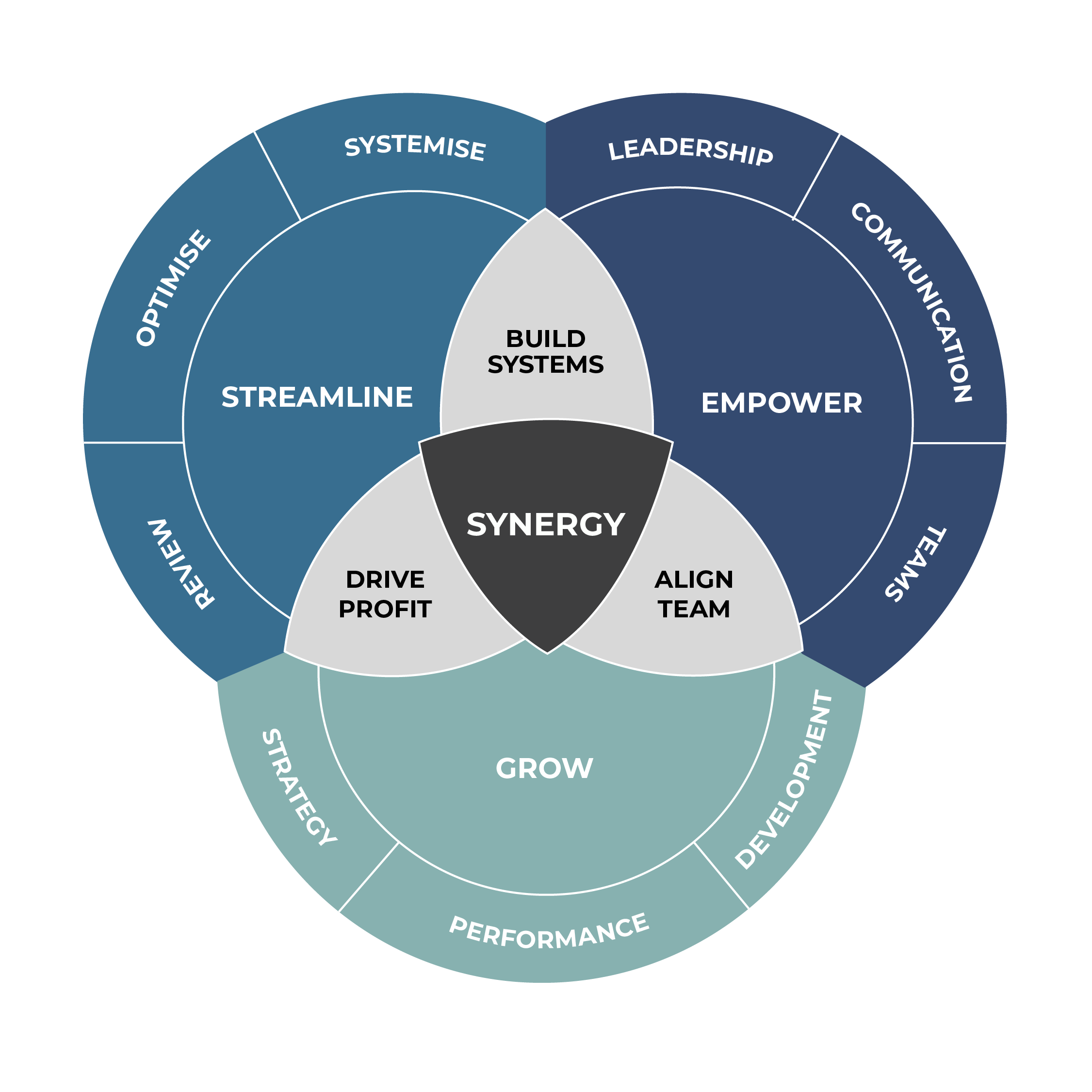 At Synergy Systematics, we review your business operations to make them more efficient and sustainable. We offer tailored leadership and management solutions, creating strong leaders and motivated teams. Our personalised support helps you develop strategies, implement systems, and understand key performance metrics for sustainable growth and freedom.